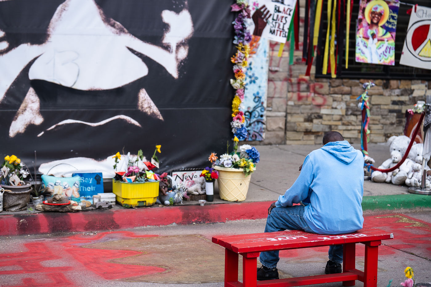 George Floyd Square on the 5th anniversary of the murder of George Floyd. The area where Floyd was killed has been a place of protest ever since.