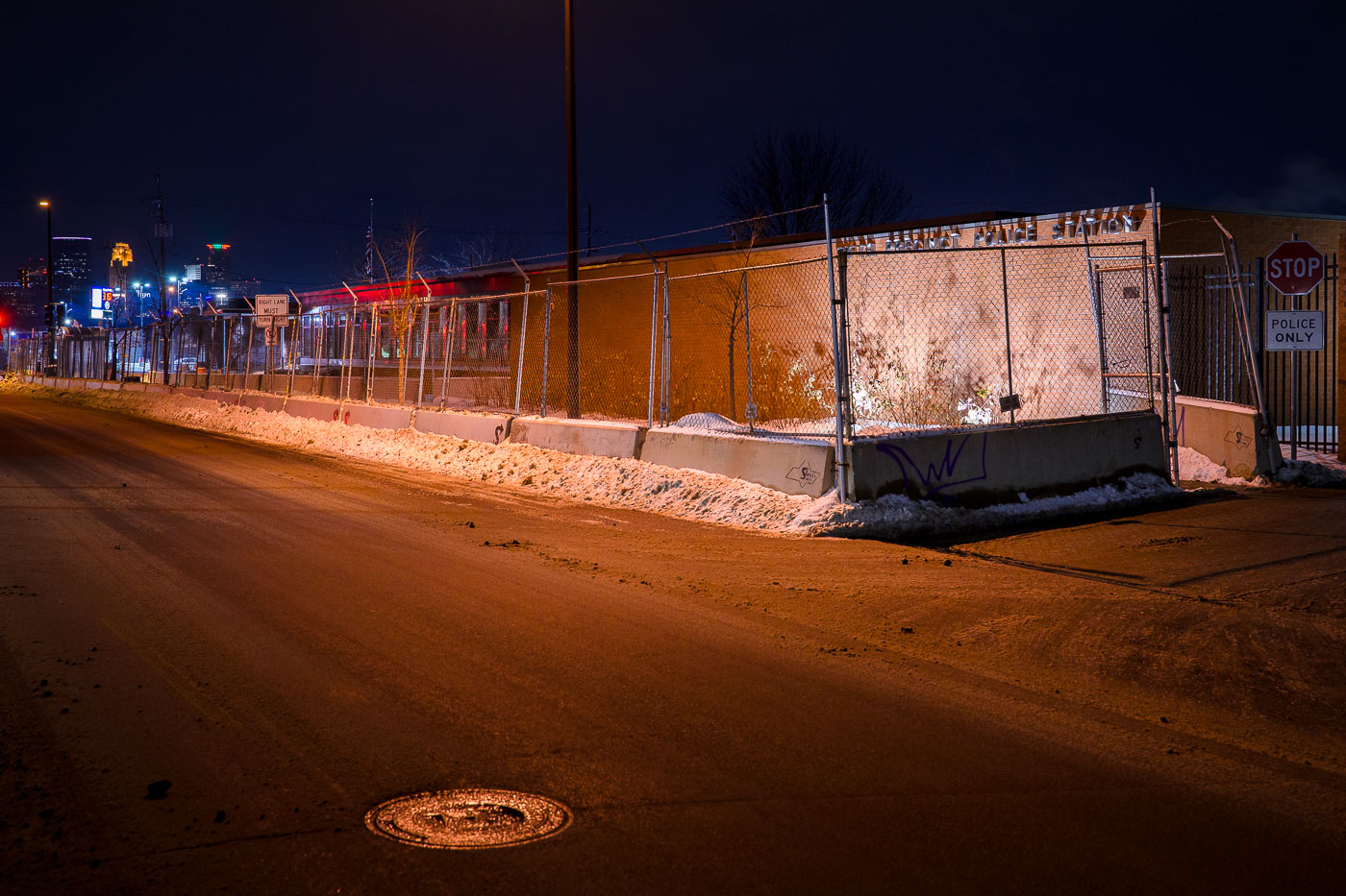 Home - Minneapolis Uprising - 2022 - January 01/02/22 Winter Nights on the Midtown Greenway 01/02/22 Hennepin Avenue Bridge on frigid night 01/02/22 Frigid steam in Downtown Minneapolis 01/02/22 Gold Medal Flour and Steam 01/05/22 Memorial Under Minneapolis 01/06/22 Liquor Lyles Bar & Restaurant on Hennepin 01/06/22 An empty Hennepin Avenue in Uptown Minneapolis 01/06/22 Flander’s Art Gallery in Uptown Minneapolis 01/06/22 Graffiti at Uptown Theater in Minneapolis 01/17/22 Minneapolis Police Fifth Precinct Security 01/17/22 Minneapolis Police Downtown Police Station 01/17/22 Minneapolis Police Second Precinct Christmas Lights 01/18/22 Minneapolis Police Fourth Precinct razor wire 01/18/22 37th & Chicago Ave Free State of George Floyd 01/18/22 Snow covered Lagoon Avenue in Uptown Minneapolis 01/18/22 Parking sign in Uptown Minneapolis off Lake Street 01/19/22 Warren E. Burger Federal Building, St. Paul 01/23/22 US Marshal Street Barricades in St. Paul 01/23/22 Ramsey County Downtown Service Center 01/23/22 Twin Cities PBS across from secure federal courthouse 01/25/22 George Floyd Square on a frigid cold night 01/25/22 Ice at Stella’s in Uptown Minneapolis 01/26/22 Domino’s Pizza on frigid cold night 01/26/22 Holiday Gas Station on frigid night 01/26/22 Warren Burger Federal Building during George Floyd Trial 01/26/22 Flag at Warren Burger Federal Building 01/26/22 Street barricades outside federal courthouse 01/26/22 St. Paul Police Squad Cars 01/29/22 Window Shutters at Target on East Lake Street 01/29/22 Haya Health Rapid COVID Testing 01/29/22 George Floyd Square Say His Name Poster 01/29/22 George Floyd Square Memorial in the snow 01/29/22 Kokou Christopher Fiafonou at George Floyd Square 01/29/22 George Floyd Square The World Is Watching 01/29/22 FTP Stop and Think Stop Sign