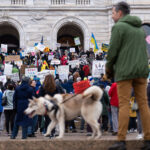 Protesters on the steps of the Minnesota State Capitol in St. Paul, Minnesota on March 4, 2025.  Taking place on the afternoon of President Trump’s first address to joint session in congress, they are protesting the actions of the Trump Administration and Elon Musk’s involvement.