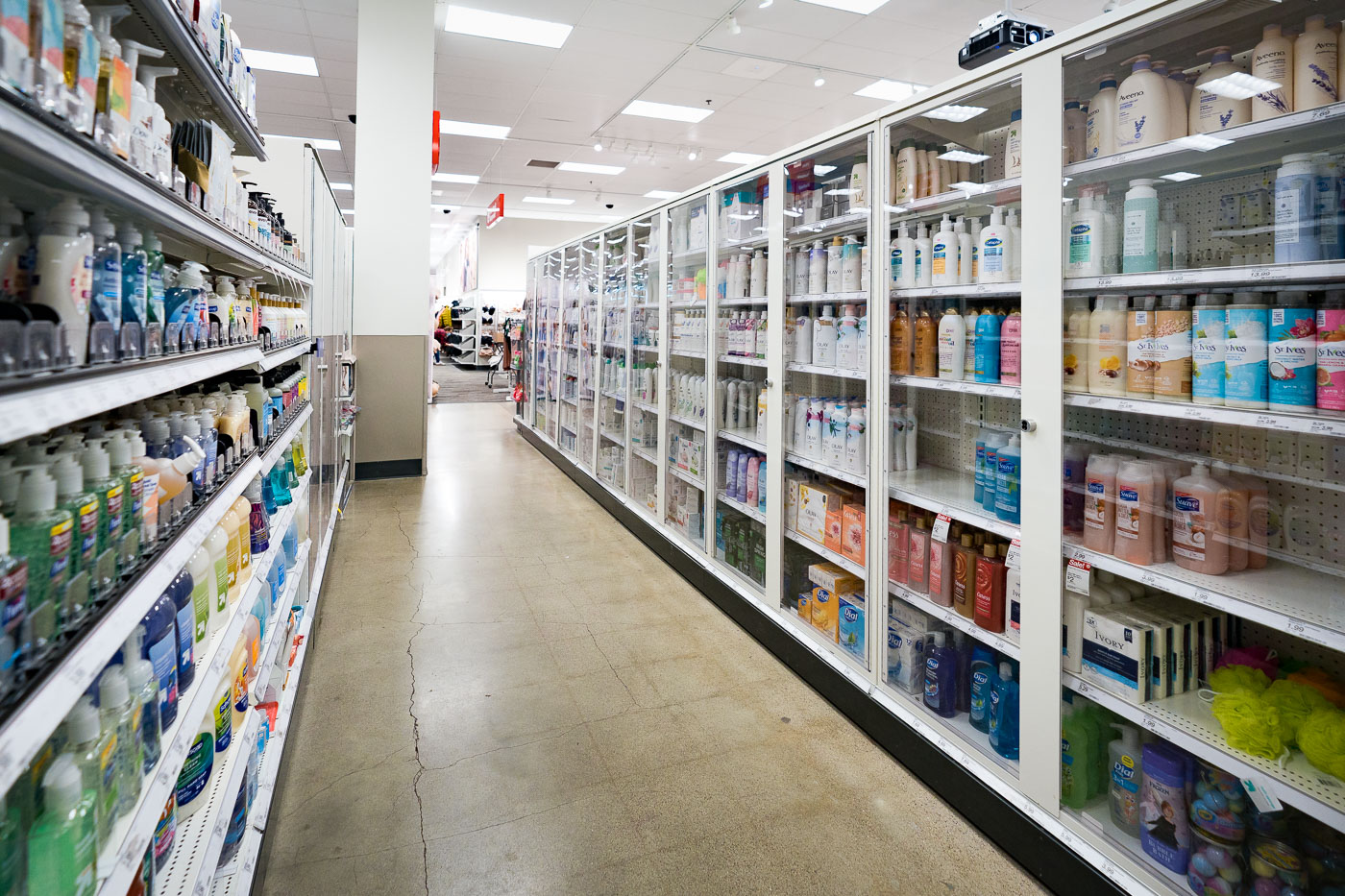 October 21, 2022 — Personal-care items—including toothpaste, toothbrushes, and other everyday hygiene products—sit behind locked Plexiglas cabinets at the Target flagship store in downtown Minneapolis. In recent years, large retailers across U.S. urban centers have expanded the use of secured cases for small, easily resold goods in response to rising shrink and merchandise loss. At this location, much of the oral-care section now requires staff assistance to access, reflecting a broader shift in store security strategies and retail operations in high-traffic downtown corridors.October 21, 2022 — Items behind locked cabinets at the flagship Target store in downtown Minneapolis.