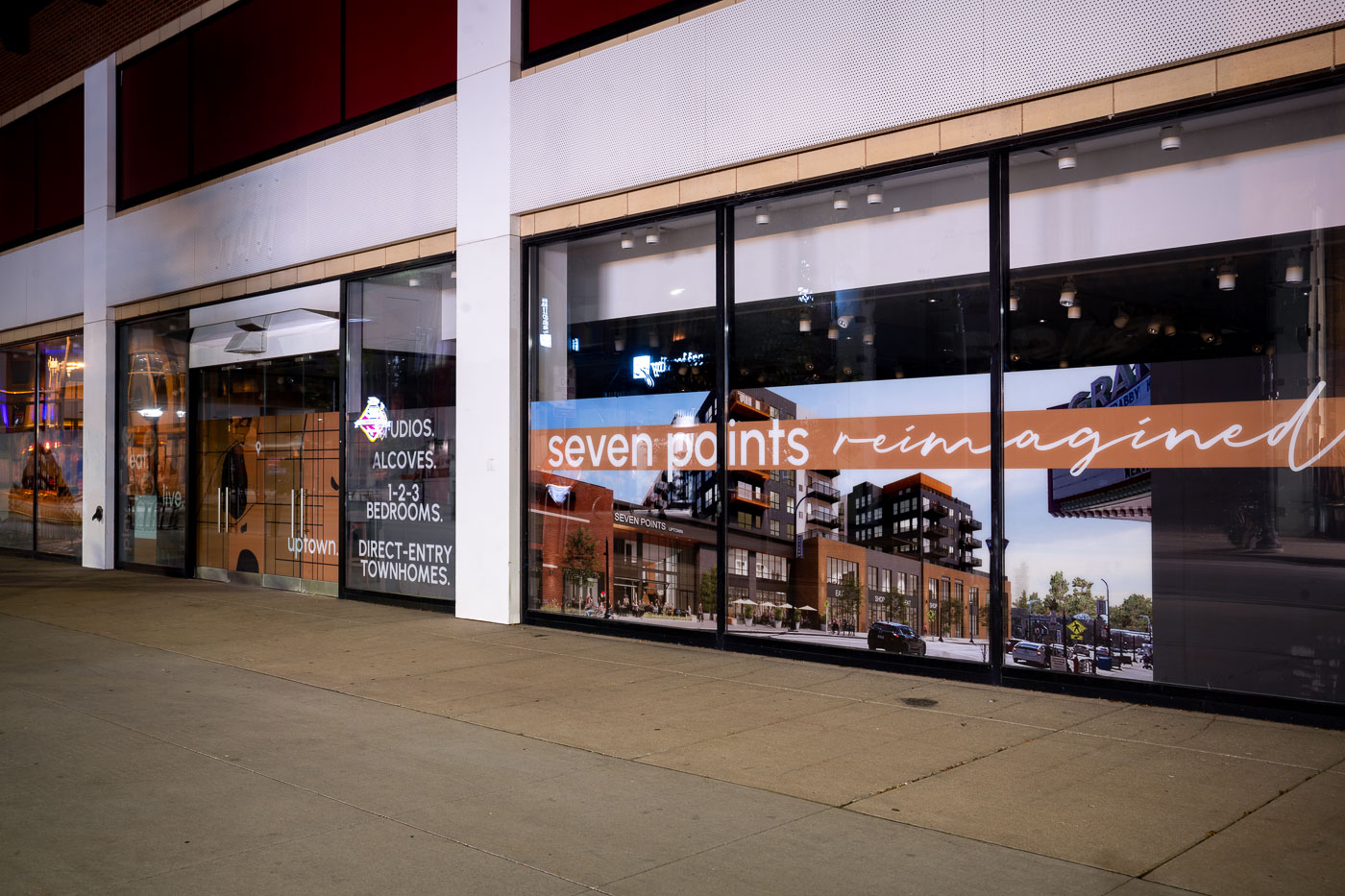 This photo set documents commercial streets in Minneapolis’s Uptown neighborhood, focusing on the Hennepin Avenue and West Lake Street corridor. Images include theater marquees, neon and storefront signage, boarded windows, construction barriers and public messaging such as Black Lives Matter signs. The collection records stages of closure, protest-related boardings, pandemic impacts and subsequent business openings and infrastructure work.