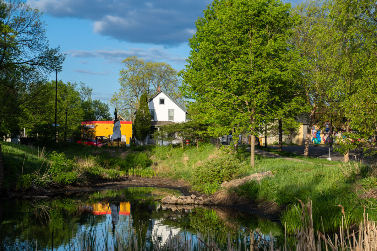 Pond near George Floyd Square and Say Their Names Cemetery. The area has been a place of protest since the May 25, 2020 murder of George Floyd.