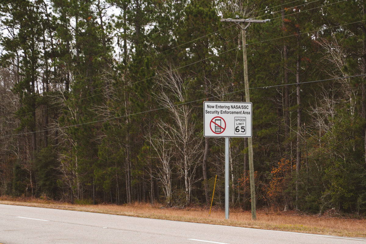Along a quiet stretch of pine-lined Highway 607 in Hancock County, Mississippi, a sign alerts motorists: Now Entering NASA/SSC Security Enforcement Area. Beyond this point lies the vast Stennis Space Center, where engines for Apollo, the Space Shuttle, and Artemis have been tested at full throttle. The reminder of security restrictions — paired with the speed limit notice — reflects how an otherwise ordinary southern highway doubles as the gateway to one of the most advanced propulsion test facilities in the world.
