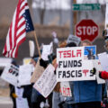 About 500 protesters outside Tesla in Minneapolis (Golden Valley) with signs reading “NOT PAID JUST PISSED”, “Tesla Funds Fascists”, “Save the VA”, “No Vet Left Behind”, Make Nazis Afraid Again” to name a few. This is the 7th weekend in a row of protests at this showroom.